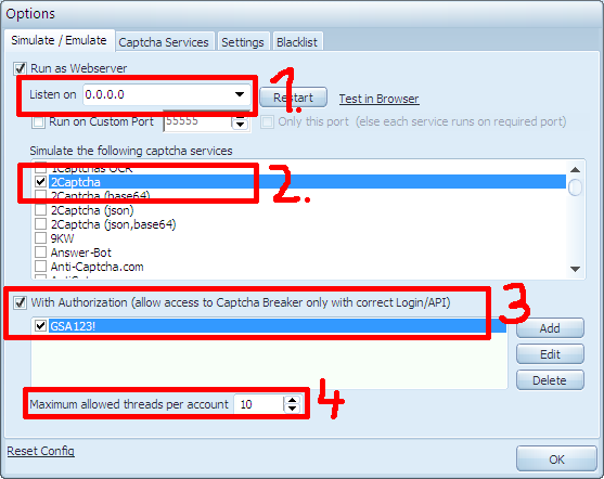 It's also possible to use GSA Captcha Breaker as a remote server to simulate other captcha services. Here are the steps you need to follow: