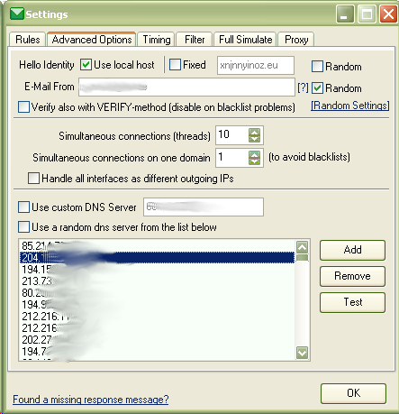 Here you enter the E-Mail address that you use to simulate an E-Mail sending. When you use the local host as identification, it also uses your hostname for that E-Mail. Again you can change it to a fixed string or randomize the settings.