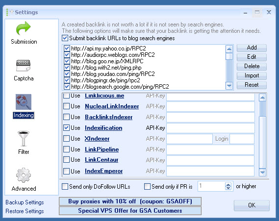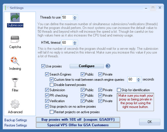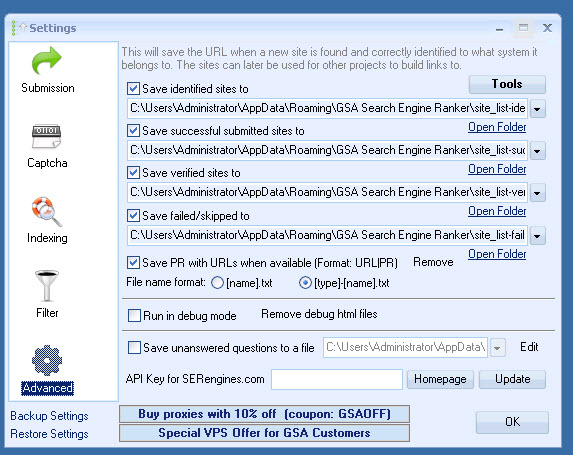 Allows you to save all current global GSA SER settings to file. By default, this is a ZIP file named GSA_SER_Settings.