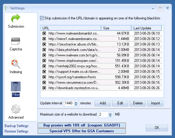 Skip submission if the URL domain is appearing on one of the following blacklists | Stub |