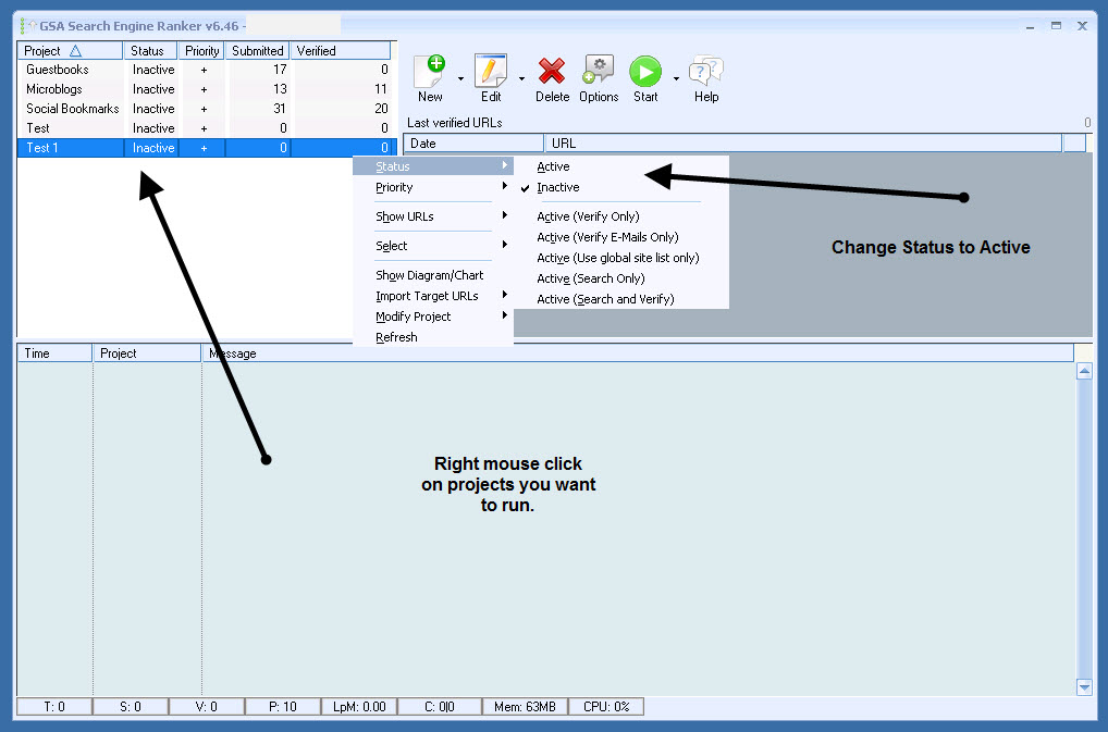 To automate your backlinking, right click on each project in the project pane and set each status to Active.