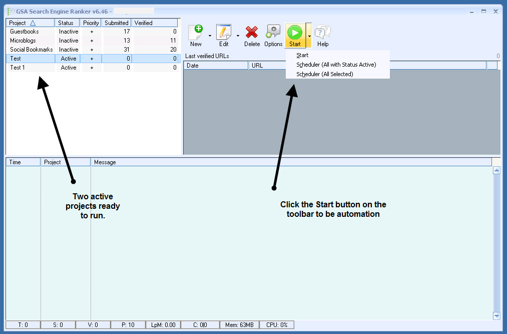 The Scheduler is accessable by the down arrow next to the Start/Stop button.