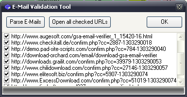 You will get a lot of emails with verification links that you have to click to get the software listed. If you don't click the links, it was a wast of time to submit to them. So you can now either log into your email client and click every link on your own, or simply use the “E-Mail Validation Tool”.